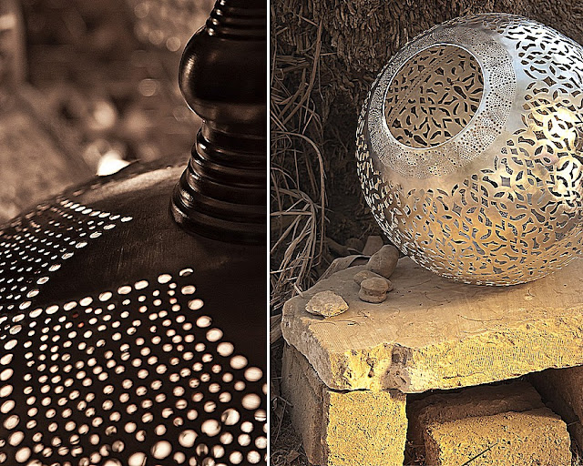 He intentado buscar infinidad de veces farolillos árabes y los he encontrado con diferentes formas, con cristales blancos o de colores, sin ellos, colgantes, de sobremesa, incluso de pie, pero seguía buscando y me decía a mi misma que hasta que no los encontrara en color plata no pararía...el mayor inconveniente a la hora de combinarlo en estancias más modernas era el color de los farolillos, suelen ser en su mayoría dorados o efecto óxido envejecido.